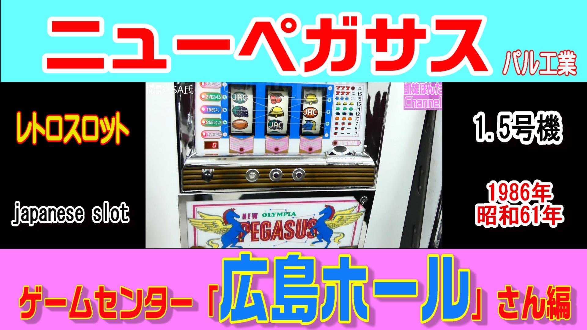 ニューペガサスは、1987年にパル工業が開発、発売した1.5号機。パル工業がリリースした1号機『ペガサス』(1986年発売)の基板改修後の1.5号機が、「ニューペガサス」です。吸い込み方式による強烈な連荘性、逆押しでのリーチ目が多彩で非常に長い間ホール設置され、稼動し続けた人気機種でした。設定1はもっとも連チャンしやすく、逆に設定6は連チャン性が控えめで最大天井がボーナス間550枚と極端に浅かったので、ワンチャン運良く高設定台に座れれば閉店まで打つことで確実に収支が上がったのですが、逆に人が嵌まった低設定の台をハイエナする方法も短時間で収支を上げる近道でした。ただ常に周囲をキョロキョロ見ながらの「キョロ打ち」は目立ってしまいホールの常連に目を付けられ、トラブルが多発してたらしいです。